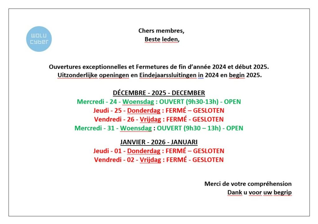 Comme chaque début d’année depuis plus de 14 ans, Wolu Cyber est au rendez-vous pour vous proposer son catalogue de formations et initiations à l’utilisation des outils numériques. Vous retrouverez au programme de l’année les valeurs sûres de votre Espace Public Numérique, mais aussi quelques nouveautés préparées par notre équipe de formateurs.